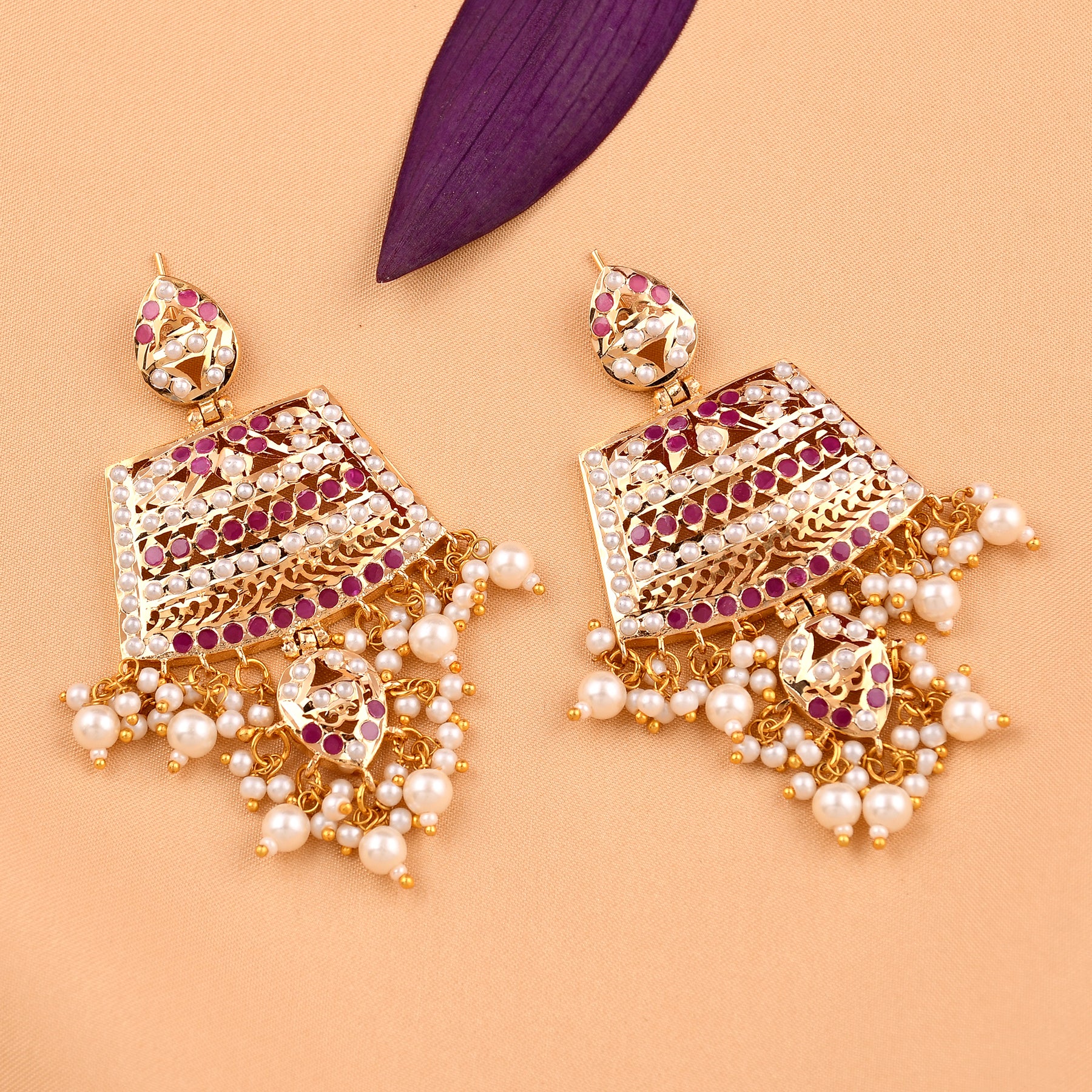 Jadaau Chandbali Pearl  Earrings
