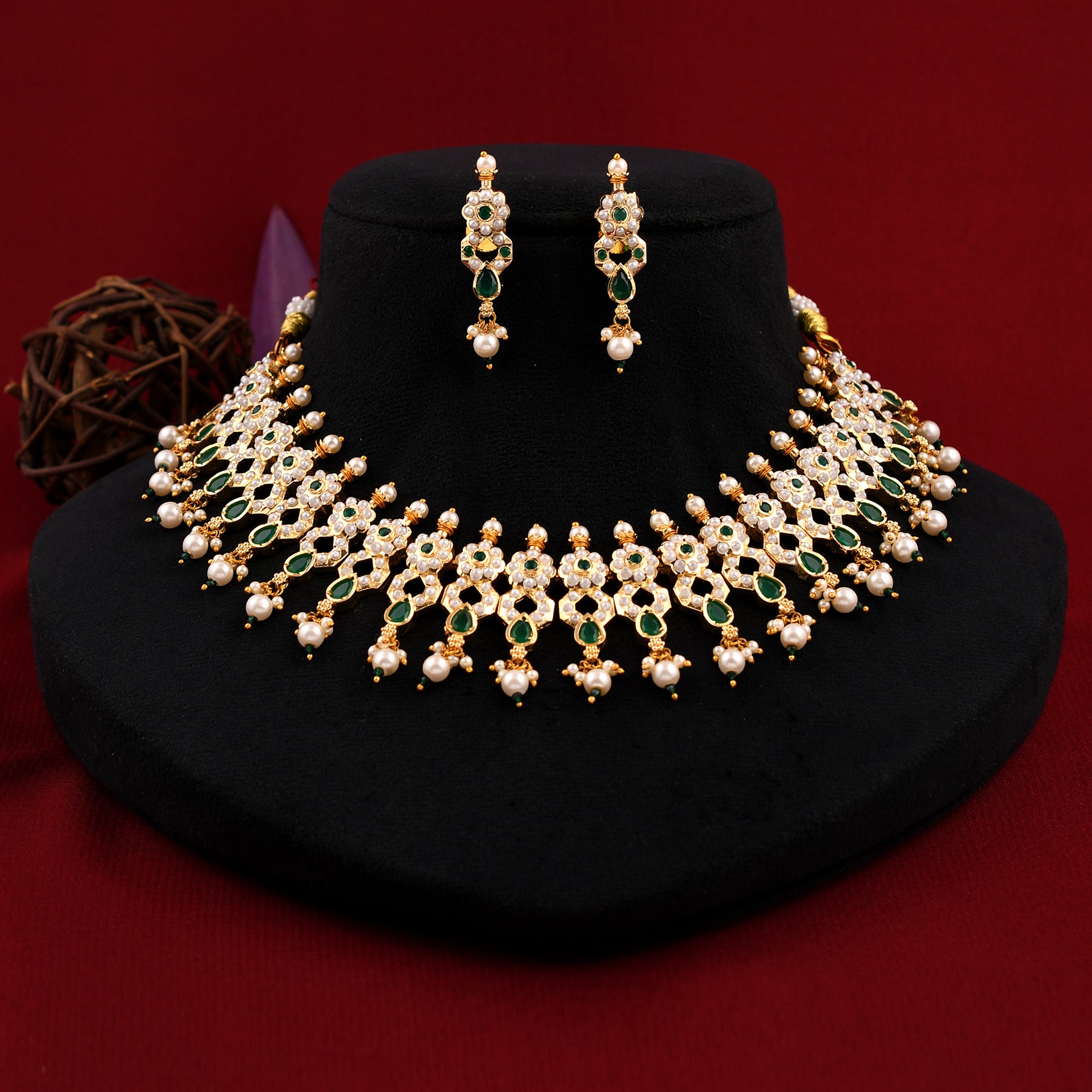 Dazzling Gold Plated Jadau Necklace Set
