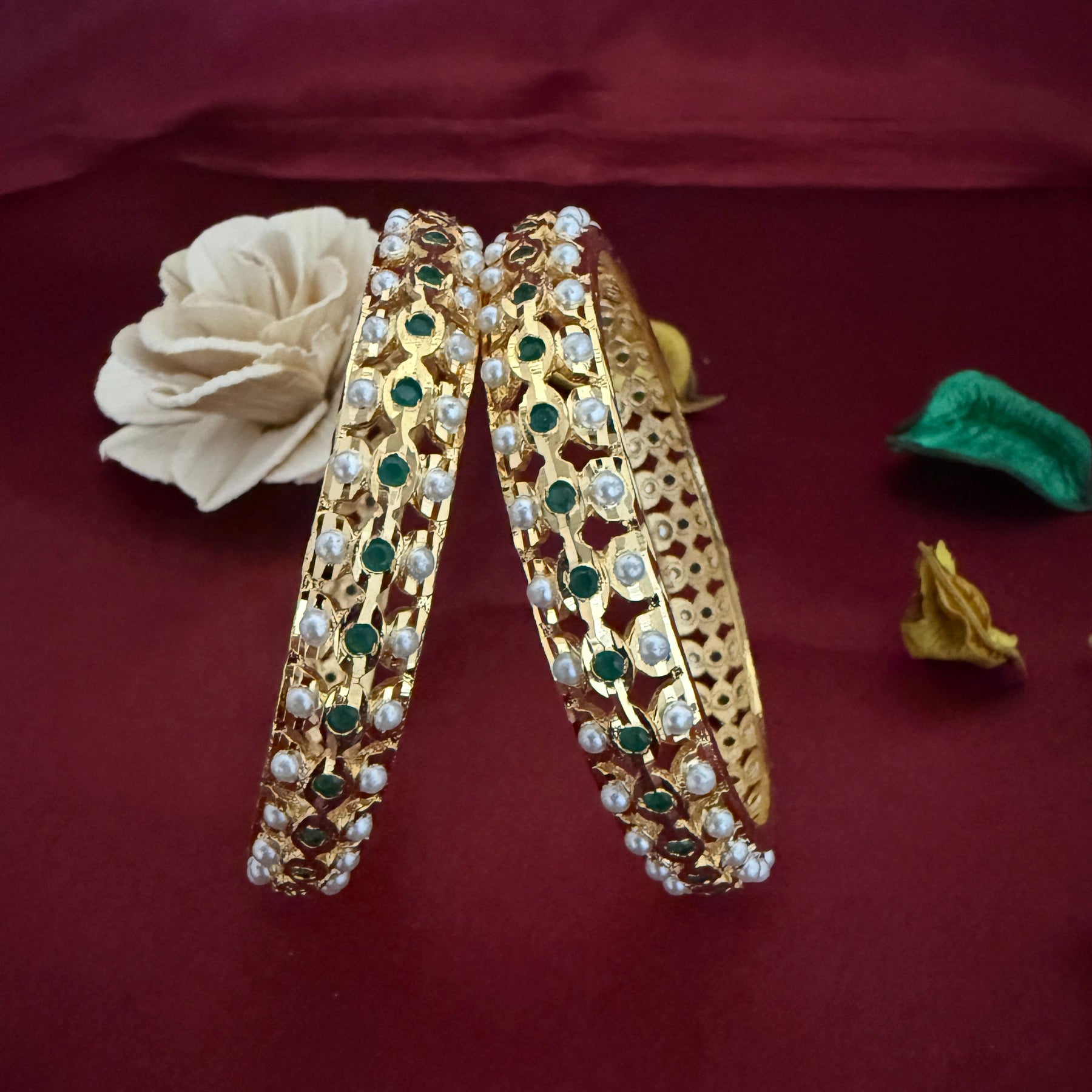 Semi Precious Pearl Jadau Bangles