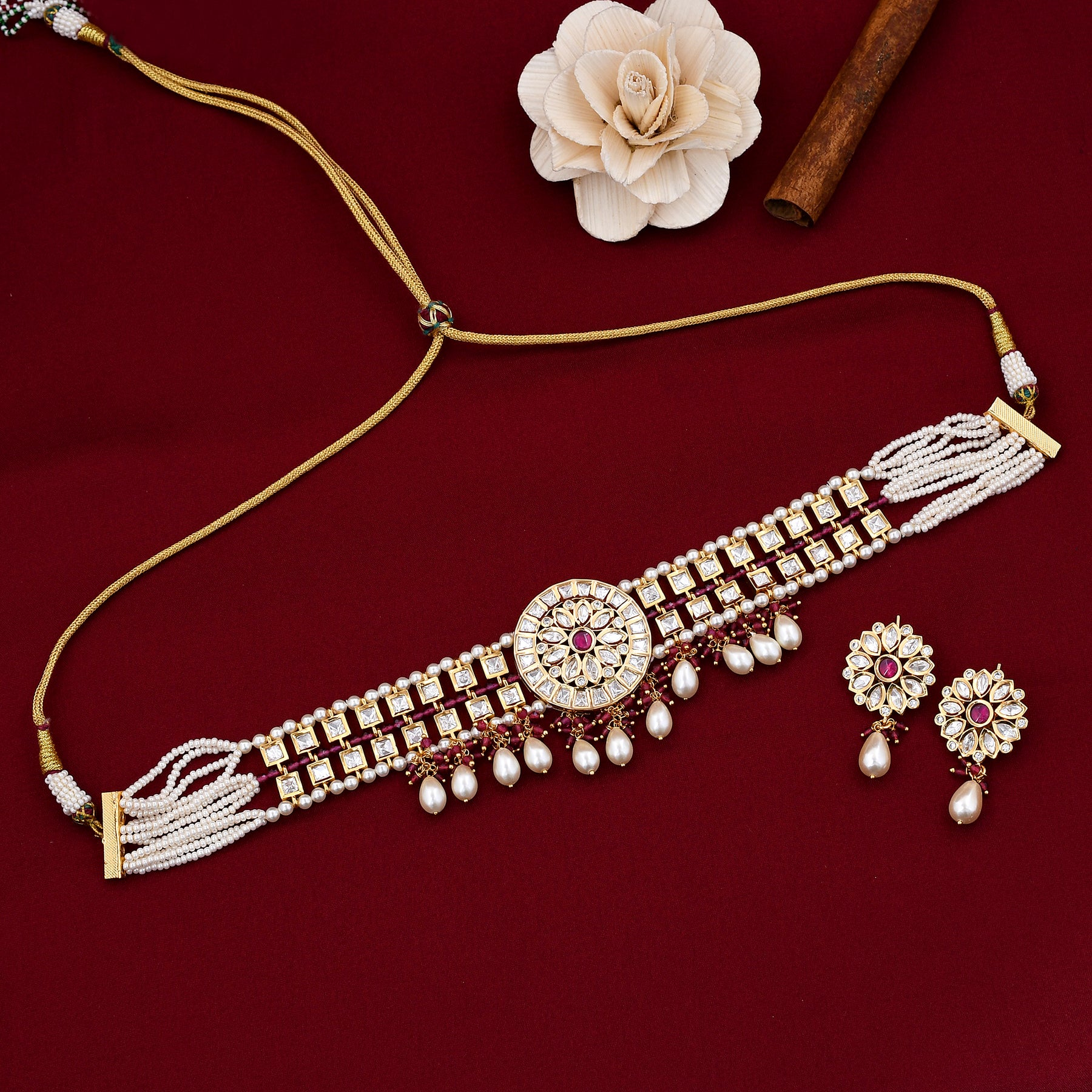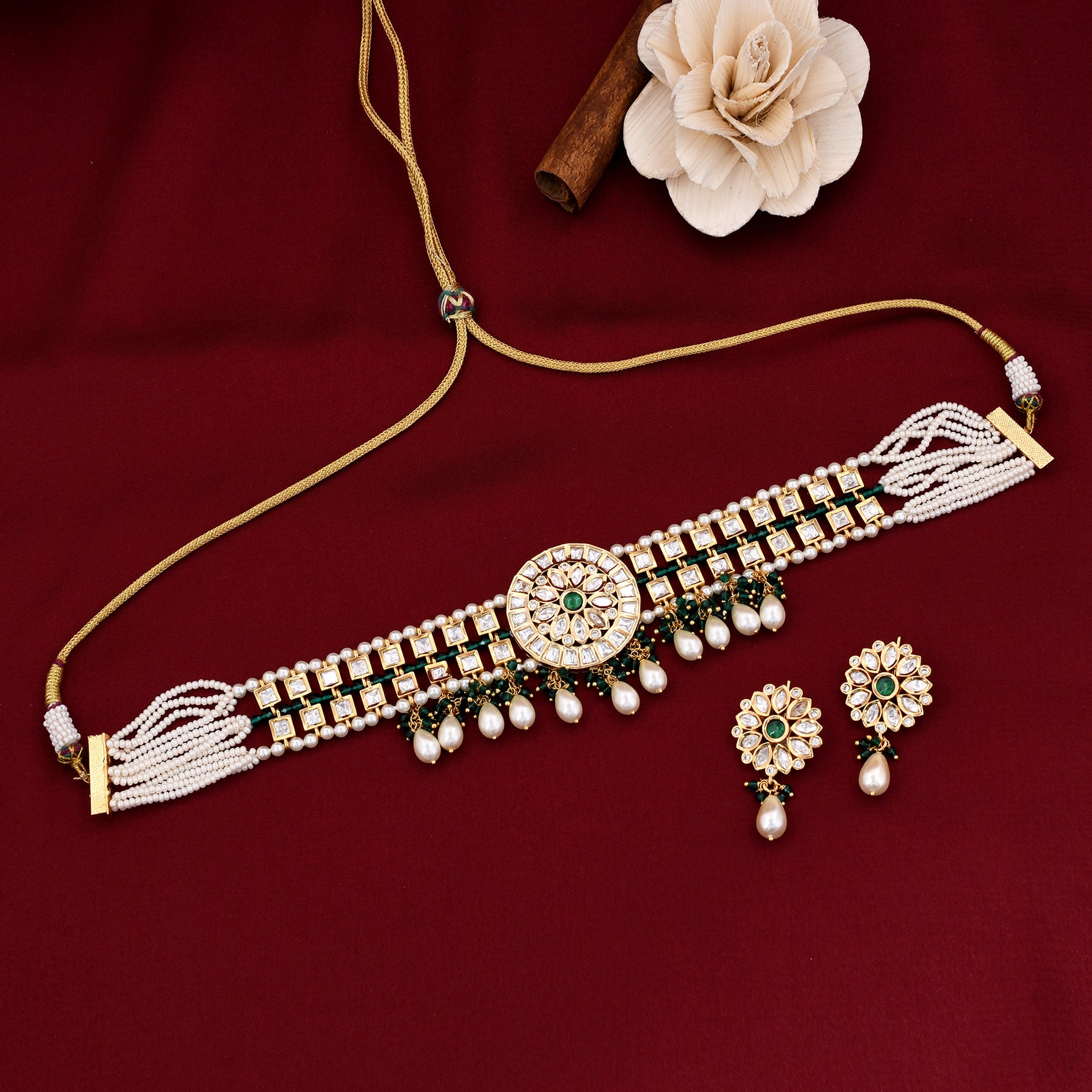 Flower Design Kundan Choker Set