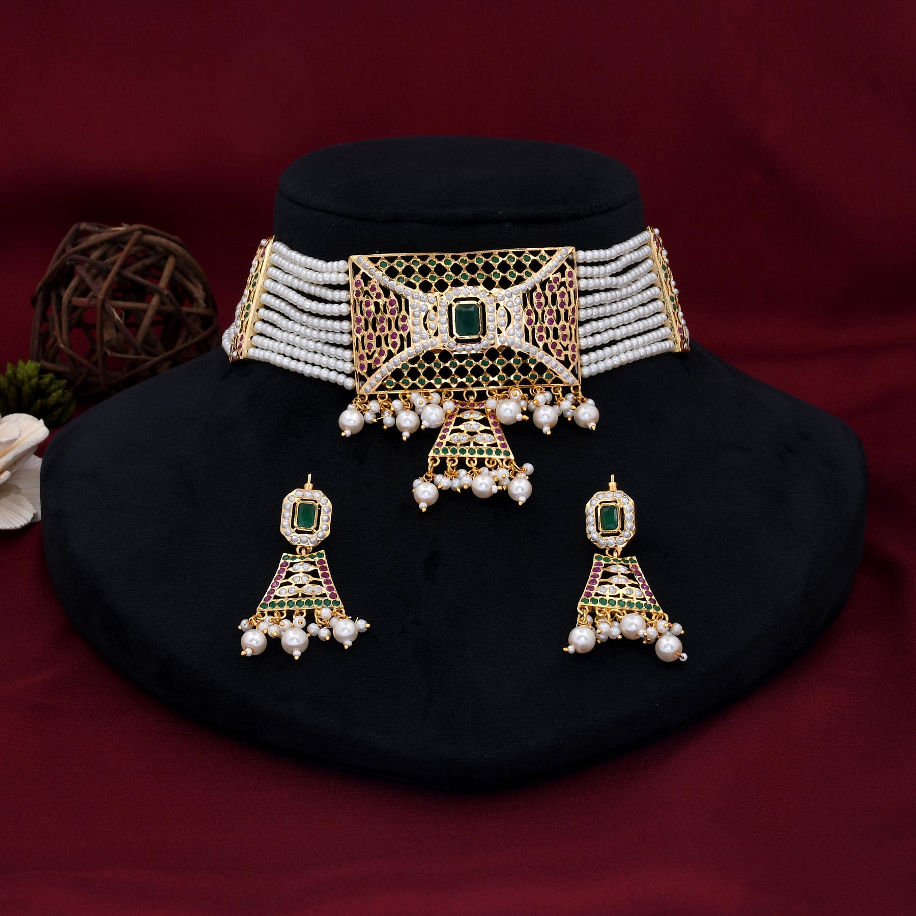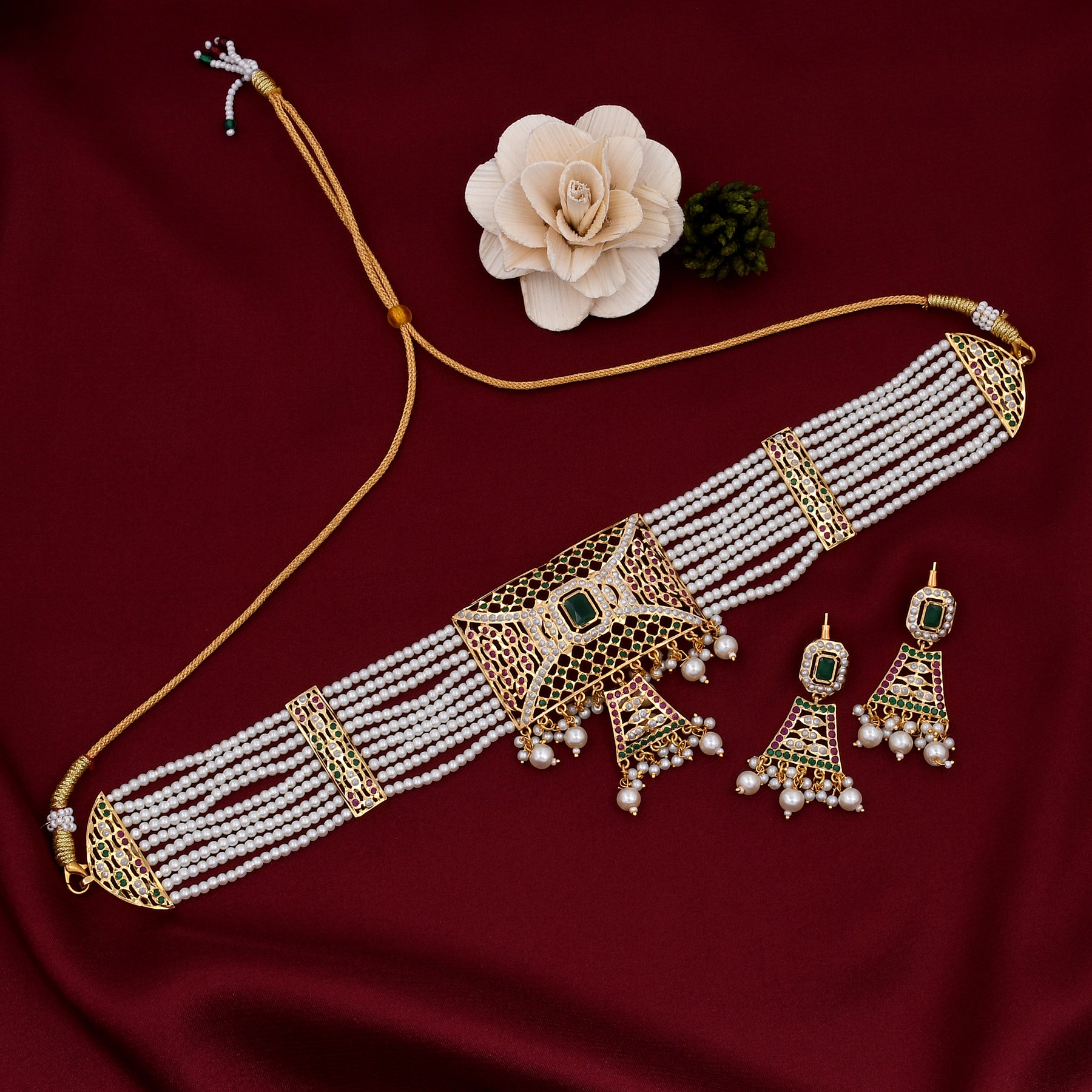 Pearl Beaded Jadau Choker Set