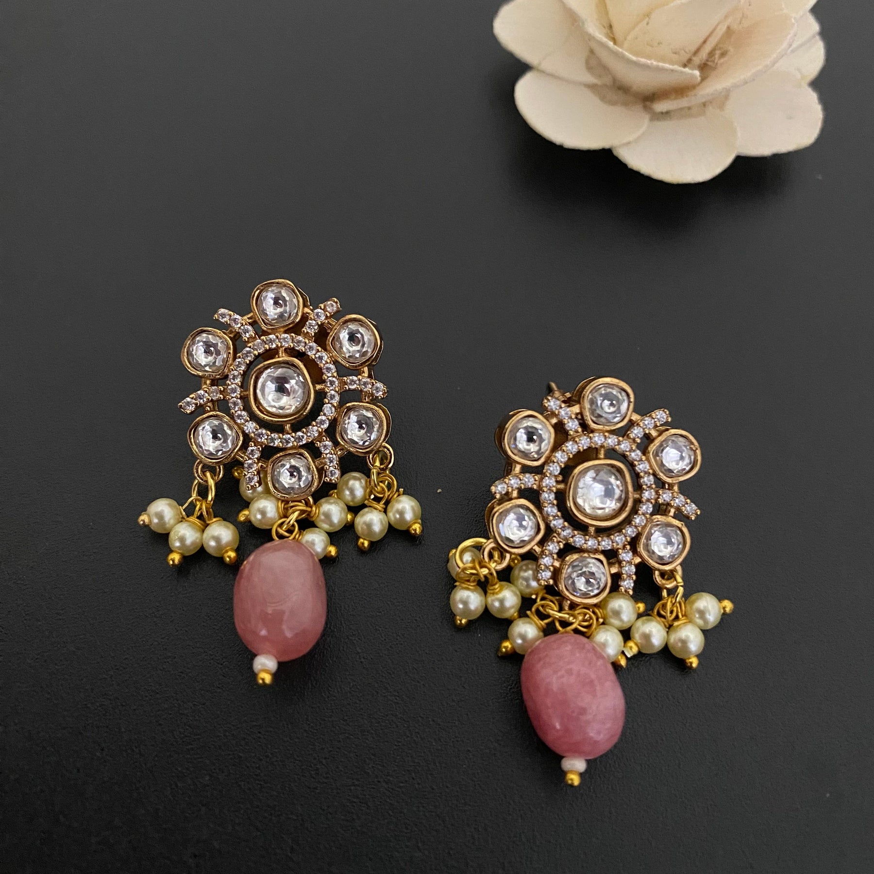 Flower Design Kundan Polki Studs