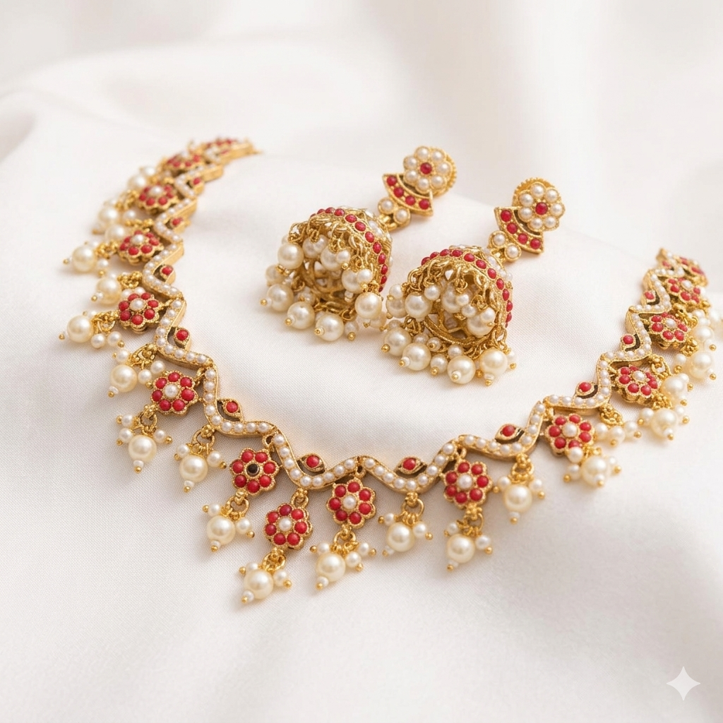 Light weight Antique Pearl Jadau Necklace Set