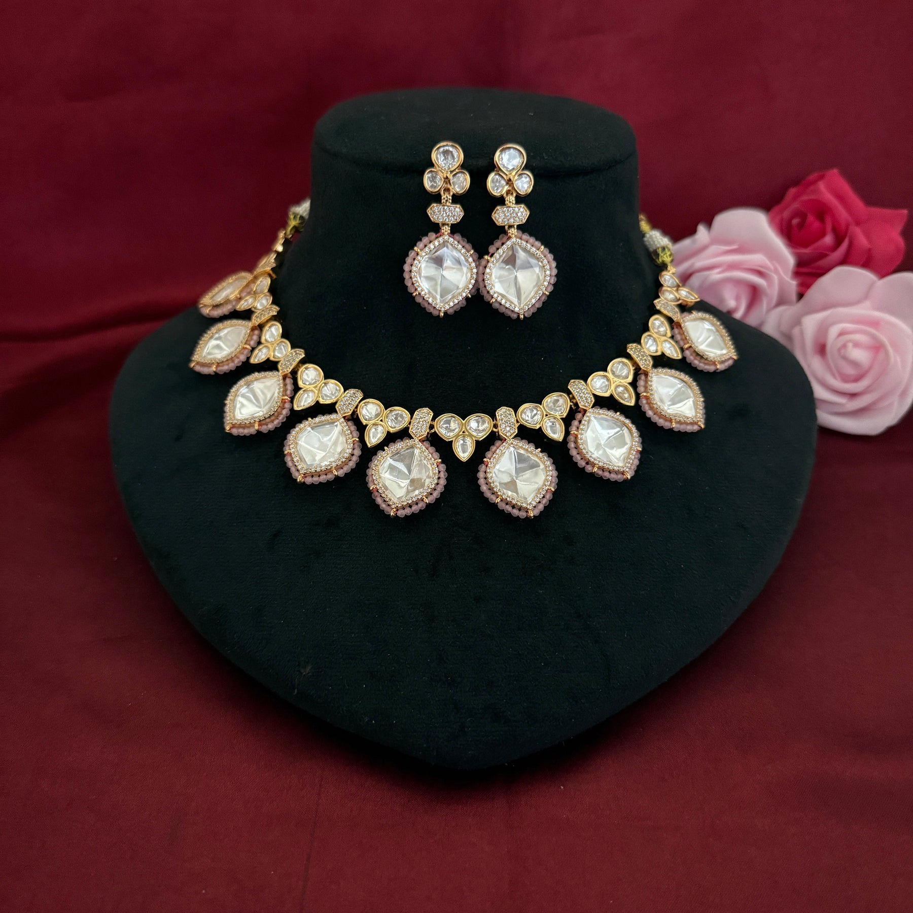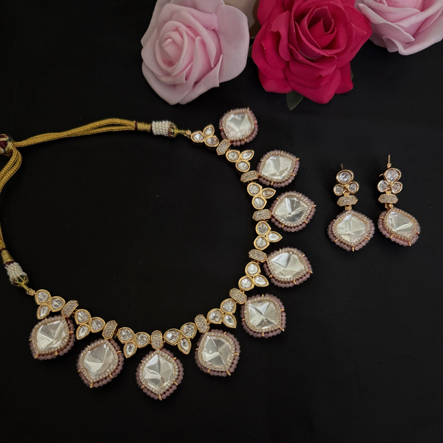 Elegant Pink Kundan Necklace Set