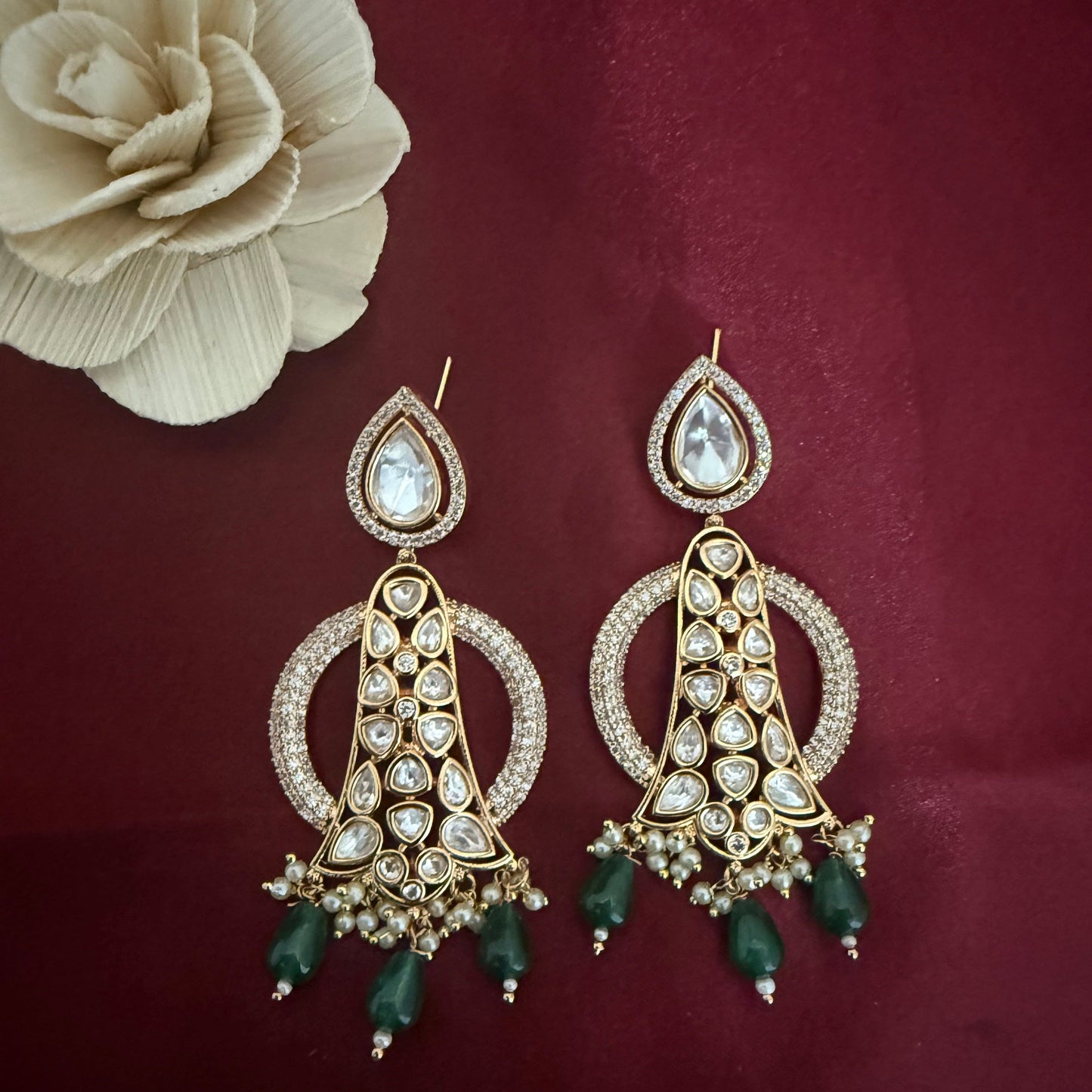 Beautiful Gold Plated Kundan Polki Earrings