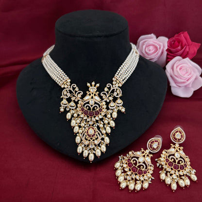 Sparkling Pearl Kundan Polki Necklace Set